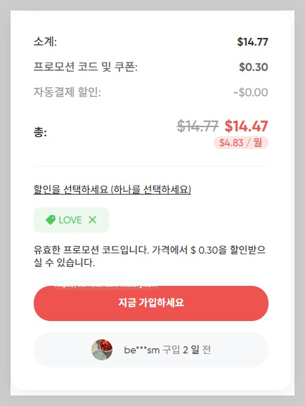 공식 개인 계정 구독과는 방식이 다름